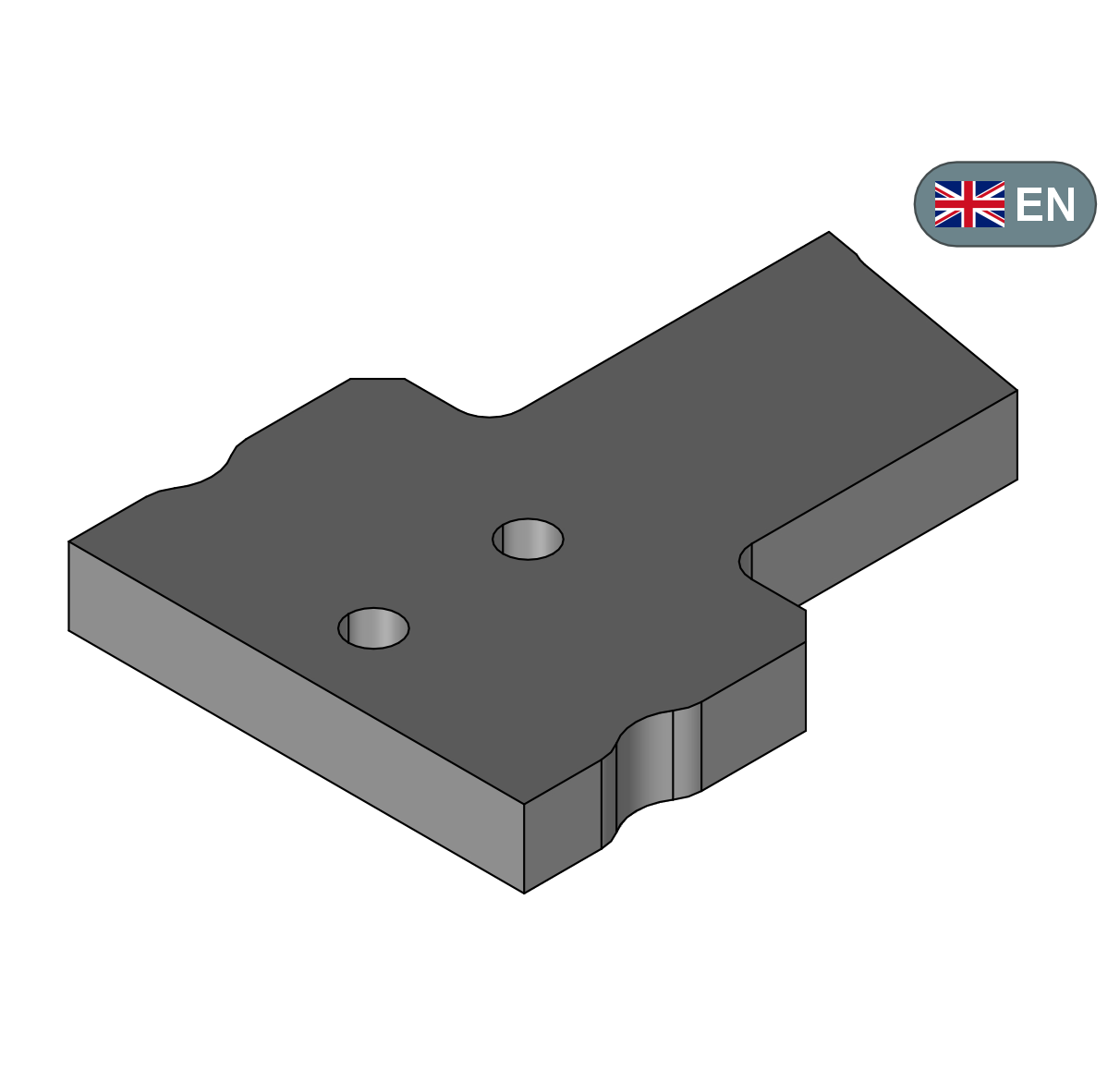 In this application example, a cutting insert is specified, which is assembled in a holding insert. A guiding area (joining / assemblability) must be described, as well as a typical installation situation (stop/locking). Through-holes are intended to allow the cutting insert to be fixed in place. The orientation and position of the cutting edge must be complete and unambiguously defined. Areas that are less relevant for the function are described completely and clearly using general geometrical tolerancing.